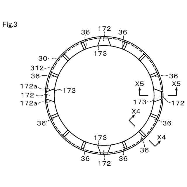 第1実施形態による洗濯機について、バランスリングの概略構成を図3のX4-X4線に沿って示す断面図