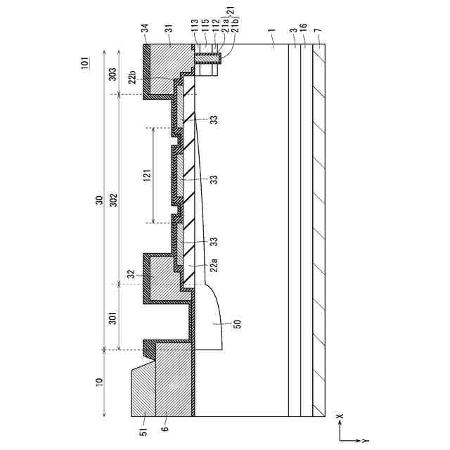 前記配線電極および前記終端電極は、前記層間絶縁膜上に設けられ、