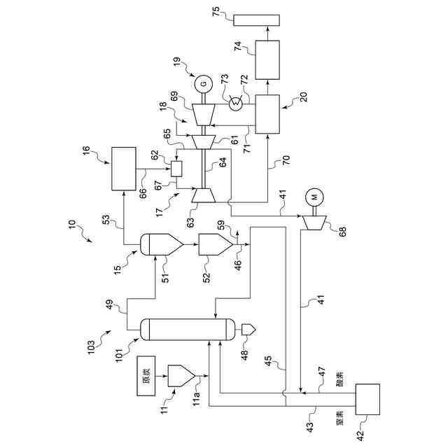 一実施形態に係るガス化炉101を適用した石炭ガス化複合発電設備10の概略構成図である。