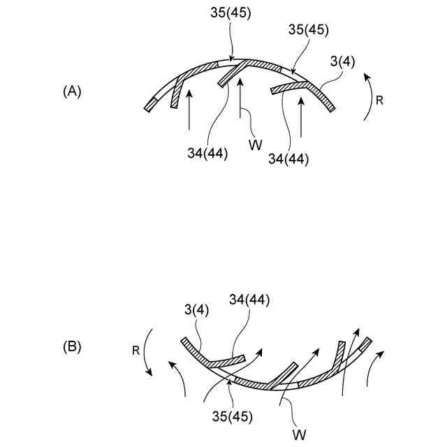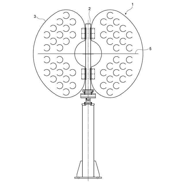また、特許文献2には、2枚一対の楔形開閉長板翼を複数配置し、風向きに対して左右の一方側で楔形の解放角度を最大にして風力を受け止め、それと同じ時、左右の他方側で楔形の鋭角度を最尖にして風を斬る形で風力を加速的に素通りさせるようにした竪型回転風車が開示されている。特許文献3には、各ブレードに透孔が形成され、各ブレードの一面における透孔の一縁には弾性板が固定され、この弾性板は、ブレードが他面より風を受けたときを除き、弾性により透孔を塞いだ状態にあり、弾性板はブレードが他面側より風を受けたときには風の力により変形して透孔を開くようになした風車が開示されている。