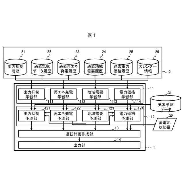 前記学習部は、さらに、前記再生可能エネルギー発電設備の発電履歴を示す過去再エネ発電履歴を学習して、再エネ発電モデルを作成する再エネ発電学習部を有し、