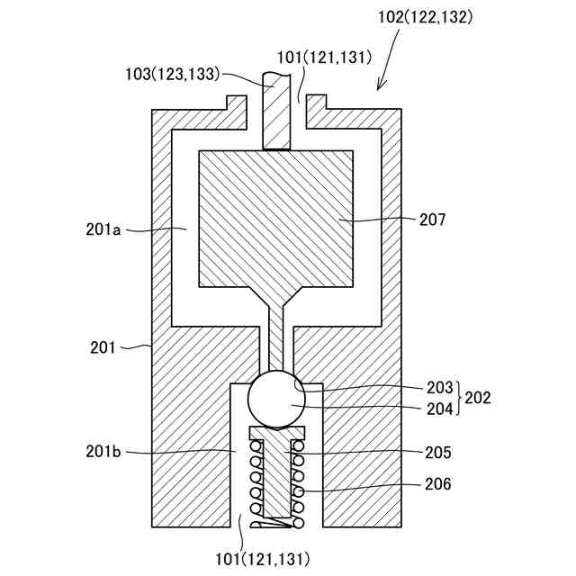 図7は、第1から第3弁機構の構成の一例について示す断面図である。