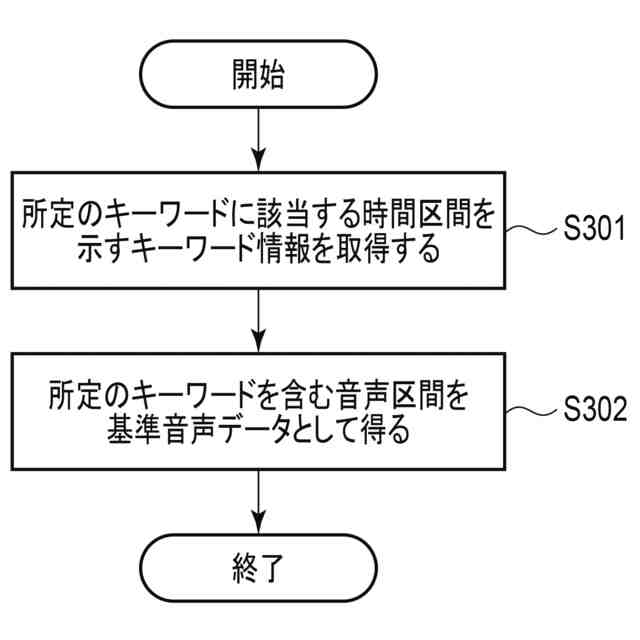 前記検出結果に基づいて、前記メディアデータから前記所定のキーワードを含む前記部分を前記基準メディアデータとして抽出するデータ抽出手段と、