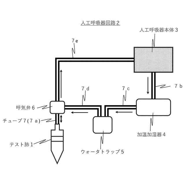 人工呼吸器等の機器を用いて人工的に呼吸を行う場合、人体に快適に呼吸を行わせるため、前記機器が人体に送り込む空気は、適度な湿度に調整されて送り込まれる。送り込まれる前記空気は、適度な湿度で調整されているため、前記機器の回路がカビや細菌に汚染される場合がある。特に、前記人体に接続する回路に交換可能に接続し、繰り返し使用するテスト肺が原因となって前記回路を汚染する場合が見受けられた。