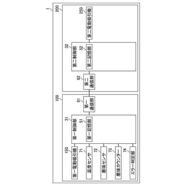 前記エラー判定部は、前記第一電動吸引機に含まれる第一モータの回転数が所定値以上になるか、又は、温度センサが測定した前記第一電動吸引機の温度が所定値以上となると、エラーであると判定し、