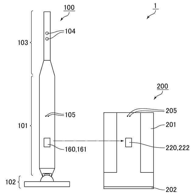 塵埃回収装置1を構成する掃除機100及び集塵ステーション200の外観を略示した正面図である。