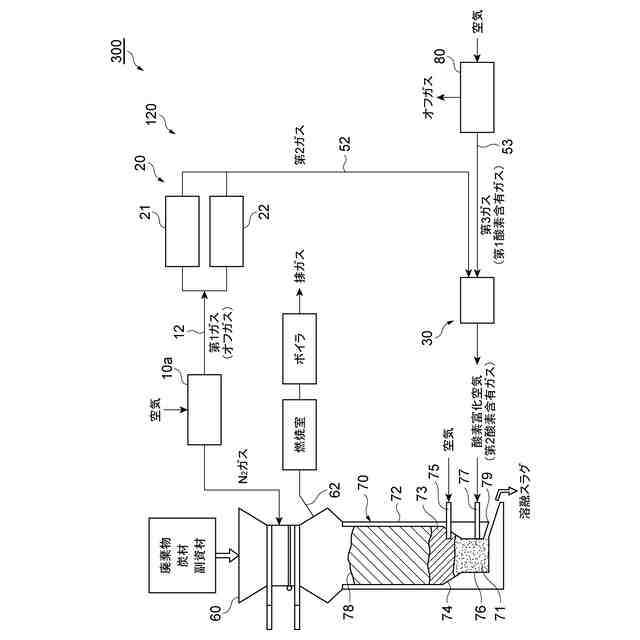 上記ガス化溶融炉設備は、第1圧力スイング吸着装置から導出される酸素ガスを含むオフガスの少なくとも一部を、上記ガス均質化装置を用いてガス化溶融炉設備に導入することができる。このためオフガスに含まれる酸素ガスを有効に利用することが可能になり、ガス化溶融炉設備を効率よく運転することができる。