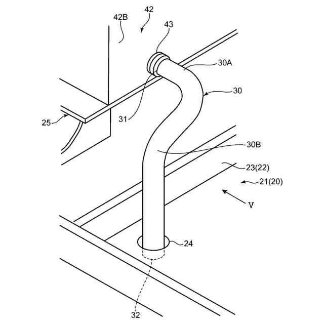第3の態様に係る建設機械は、第2の態様に係る建設機械において、さらに次の特徴を備えることが好ましい。すなわち、第3の態様に係る建設機械では、前記開口部は、前記貯留部の上部に形成されている。第3の態様によれば、開口部が貯留部と一体的に構成されているので、コンパクトに構成でき、開口部で受けた排水を直接貯留部に貯留できる。