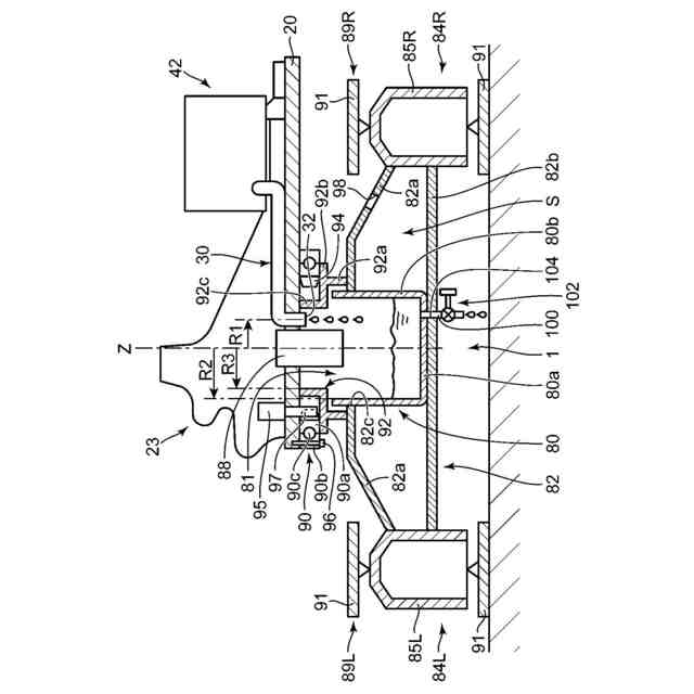 前記排出口は、当該排出口を上から見たとき、前記旋回輪の旋回中心と前記旋回輪との間の位置に配置される、請求項1~7の何れか1項に記載の建設機械。
