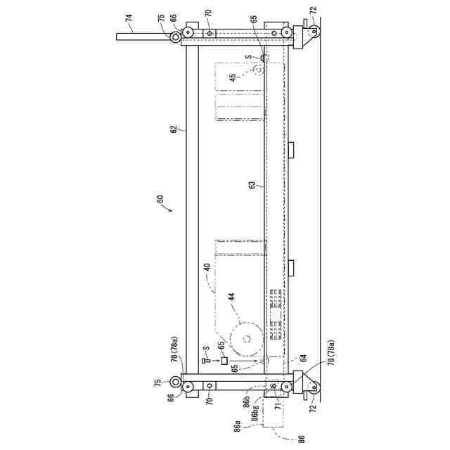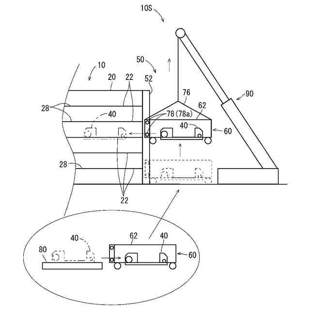 前記段に関連づけられて上下に積層され、前記棚に隣接して水平方向に沿って延びるように配置される複数の水平レールと、