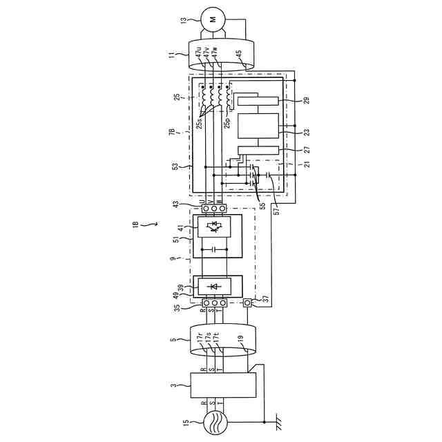 ノイズフィルタを電力変換部とモータの間に接続する変形例に係るインバータシステムの全体構成の一例を表す図である。