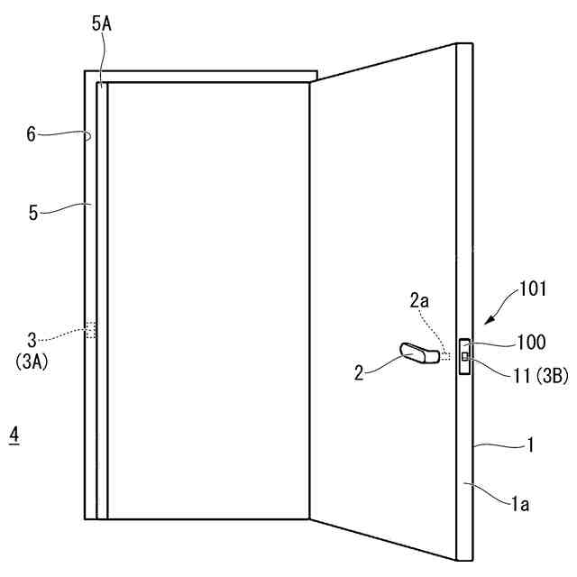 本開示の錠装置の箱錠を取り付けたドアを示す斜視図である。