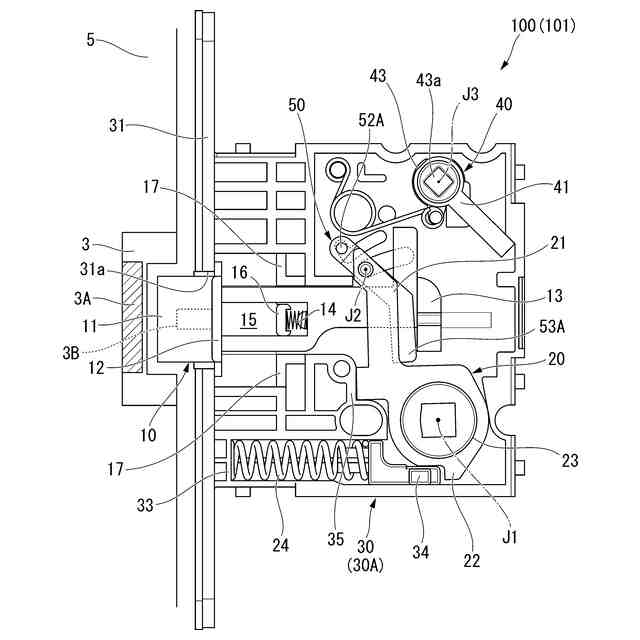 本開示の箱錠における内部構成を部分的に示す図である。