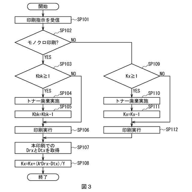 このような画像形成装置では、例えば、印字率が低くトナー消費の少ない印刷パターンが続いた場合に、トナー廃棄を実行するようになっている。