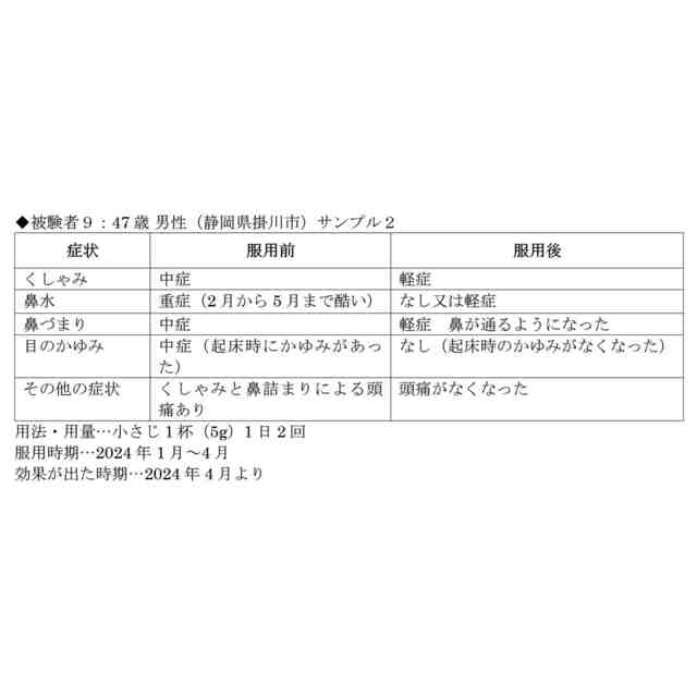 上述の花粉症対策は改良が進み一定の効果が認められている。しかしながら、空気清浄機や高品質なマスク、免疫療法など、効果的な対策には高額な費用がかかる。特に免疫療法は専門的な治療であり、コストが高くなることが多い。また、これらの対策は一時的なものでなく、継続的に実施する必要がある。特に食餌療法や免疫療法は長期間の取り組みが必要である一方、即効性がないため、継続するモチベーションを保つのが難しい。さらに、薬物療法には副作用のリスクが伴う。例えば抗ヒスタミン薬は眠気を引き起こすことがあり、ステロイド点鼻薬の長期使用は鼻粘膜への影響が懸念される。そのため簡便な方法で効果が高く、副作用のない花粉症改善剤が求められている。