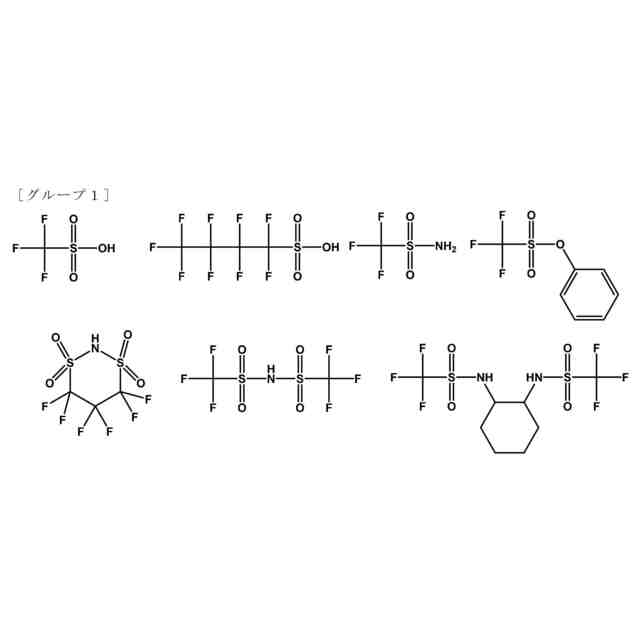 ハロゲン元素を一つ以上含むスルホン酸化合物およびハロゲン元素を一つ以上含むスルホンアミド系化合物のうちの少なくとも1種;および