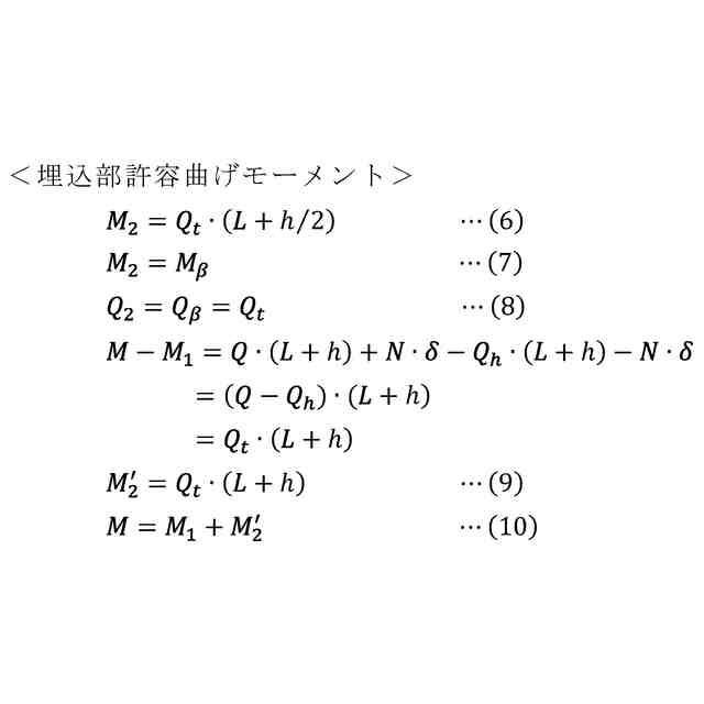 上記構成(1)によれば、杭頭接合面許容曲げモーメントに埋込部許容曲げモーメントを累加することで、杭頭部の曲げ耐力の増大や杭頭定着筋の本数・直径の増大を回避しながら杭頭接合部許容曲げモーメントを大きくすることができ、より大きな発生曲げモーメントに対応可能である。あるいは、上記構成(1)によれば、埋込部許容曲げモーメントを累加することで、杭頭接合部許容曲げモーメントを維持しながら杭頭接合面許容曲げモーメントを低減可能である。このため、杭頭部の曲げ耐力を低減可能であり、あるいは杭頭定着筋の本数・直径を低減して過密配筋を回避可能である。なお、杭頭定着筋は必須ではなく、杭頭定着筋が杭頭部に取り付けられている場合、杭頭部の上端面における曲げ耐力は、杭頭定着筋を含めて演算される。