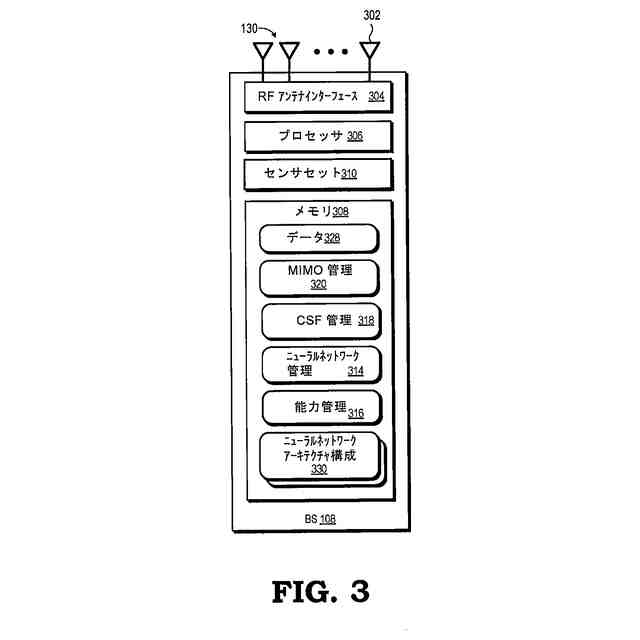 さまざまな実施形態において、この方法はさらに、以下の態様のうちの1つまたは複数を含むことができる。この方法はさらに、第2の装置から受信した1つまたは複数のRF信号に基づいてCSI推定値をアルゴリズム的に決定するステップを含む。第1の出力は、将来の時点のCSI推定値の予測(つまり、予測将来のCSI推定値)をさらに表す。第1の出力を生成するステップは、送信ニューラルネットワークへの入力として提供される第2の装置の多入力多出力(MIMO)プロセスのスケジューリング待ち時間の表現にさらに基づいて、送信ニューラルネットワークで第1の出力を生成するステップをさらに含む。送信ニューラルネットワークは、スケジューリング待ち時間の表現を入力として受信する。ニューラルネットワークアーキテクチャ構成は、スケジューリング待ち時間に基づいて、複数の候補ニューラルネットワークアーキテクチャ構成から送信ニューラルネットワーク用に選択される。能力情報によって表される少なくとも1つの能力には、アンテナ能力、処理能力、電力能力、またはセンサ能力のうちの少なくとも1つが含まれる。ニューラルネットワークアーキテクチャ構成は、以下の少なくとも1つに基づいて、複数のニューラルネットワークアーキテクチャ構成から選択される。第1の装置の少なくとも1つの能力、第2の装置の少なくとも1つの能力、CSI推定値によって表されるチャネルの周波数または帯域、または第1の装置の現在の信号伝播環境。第1の装置にローカルに記憶される複数の候補ニューラルネットワークアーキテクチャ構成のうちの1つに関連付けられる識別子を受信するステップと、または、ニューラルネットワークのアーキテクチャ構成のパラメータを表すデータを受信するステップとのうちの少なくとも1つを含むニューラルネットワークアーキテクチャ構成の指示を受信する。第1の出力を生成するステップは、送信ニューラルネットワークにおいて以下の少なくとも1つにさらに基づいて第1の出力を生成するステップを含む。第1の装置の1つまたは複数のセンサから送信ニューラルネットワークに入力されるセンサデータ、または、RFアンテナインターフェースの少なくとも1つの現在の動作パラメータ。この方法は、送信ニューラルネットワークの送信ニューラルネットワークアーキテクチャ構成と、第2の装置の受信ニューラルネットワークの受信ニューラルネットワークアーキテクチャ構成との共同トレーニングに参加するステップをさらに含む。この方法はまた、CSIパイロット信号の表現を第1の装置の受信ニューラルネットワークの入力として受信するステップと、受信ニューラルネットワークにおいて、CSIパイロット信号の表現に基づいて第2の出力を生成するステップであって、第2の出力はCSI推定値の表現を含む、ステップと、を含む。第2の出力を生成するステップは、以下のうちの少なくとも1つに基づいて受信ニューラルネットワークで第2の出力を生成するステップをさらに含む。第1の装置の1つまたは複数のセンサからのセンサデータ、CSI推定値に関連するチャネルの搬送波周波数、または、第1の装置のアンテナインターフェースの動作パラメータ。送信ニューラルネットワークはディープニューラルネットワーク(DNN)である。