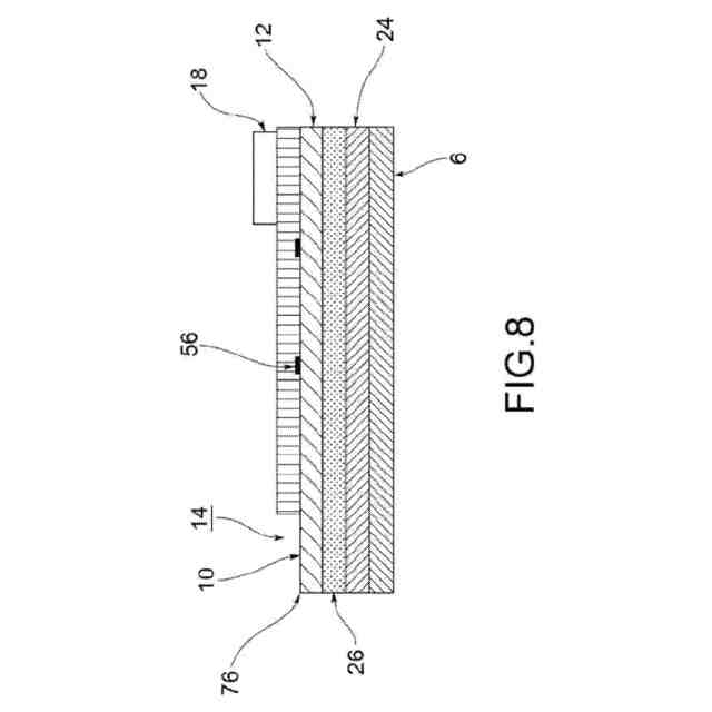 -第2の正面層(28)及び粘着層(26’)を備える第2のラミネート材料(20)、前記第2のラミネート材料(20)は、前記粘着層(26’)が少なくとも前記自由領域(14)に粘着するように前記第1のラミネート材料(4)に接合され、ここにおいて、前記第2の正面層(28)は、予め規定された厚さ(S1)を有する、