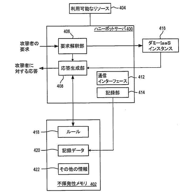 【解決手段】ハニーポットサーバは、IaaSインスタンスに関する要求を攻撃者から受信すると、要求に対する応答を生成し、要求に応じてこの応答が攻撃者に通信する。また、ハニーポットサーバは、攻撃者に関するデータ及び攻撃者によるハニーポットサーバとの1つ以上のやり取りに関するデータを記録する。