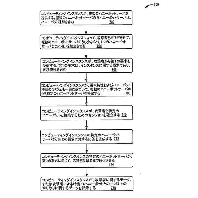 コンピューティングインスタンスが、複数のハニーポットサーバを提供するステップを含み、前記複数のハニーポットサーバに含まれる各ハニーポットサーバは、ハニーポット種別を含み、前記方法は、さらに、