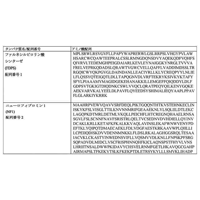 別の態様では、少なくとも1つのポリペプチドは、ファルネシルピロリン酸シンターゼまたはその断片、およびニューロフィブロミンI、グリセルアルデヒド-3リン酸デヒドロゲナーゼ、フィブロネクチンドメインIII型含有タンパク質1、真核生物翻訳開始因子4A-I、L-乳酸デヒドロゲナーゼB鎖、ヘテロ核リボ核タンパク質A1、多発性嚢胞腎疾患1様タンパク質1、熱ショックタンパク質コグネイト71kDa、アンキリン-3、Rho23GTPアーゼ活性化タンパク質、細胞骨格ケラチン78 II型、α-3コラーゲン鎖(VI)、プロテアソーム5型のβサブユニット、ヘテロ核リボ核タンパク質A2/B1、ヒストンH2B 1-B型、DnaJサブファミリーCメンバー13のホモログ、βエノラーゼ、グルタチオンS-トランスフェラーゼP、グルタチオンS-トランスフェラーゼMu3またはその断片から選択される少なくとも1つのポリペプチドである。追加の態様では、少なくとも1つのポリペプチドは、配列番号1のアミノ酸配列を有するポリペプチドと少なくとも約70%の配列同一性を有するポリペプチドまたはその断片、ならびに配列番号2~20から選択されるアミノ酸配列を有するポリペプチドと少なくとも約70%の配列同一性を有する少なくとも1つのポリペプチドおよびそれらの断片である。