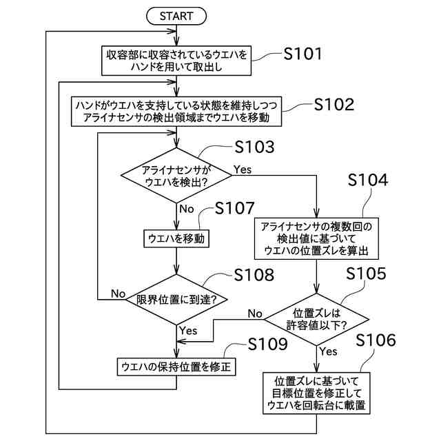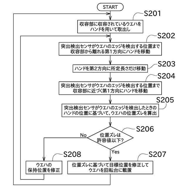 これにより、ウエハをアライナ装置に置く前にウエハの位置ズレを検出するので、ウエハの位置ズレに起因してアライナ装置で発生し得る問題を未然に防止可能である。