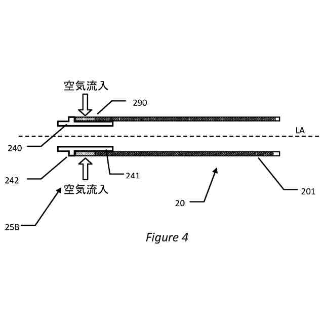 ユーザがデバイスで吸引する間、電力が加熱要素に供給されることにより、加熱要素の近傍のエアロゾル源(ペイロードの一部)が気化して、ユーザが吸引するエアロゾルが生成される。このようなデバイスには通例、システムのマウスピース端から離れて配置された1つ又は複数の吸気孔が設けられている。ユーザがシステムのマウスピース端に接続されたマウスピースで吸引すると、空気が入口孔から引き込まれてエアロゾル源を通過する。エアロゾル源とマウスピースの開口とをつなぐ流路が存在するため、取り込まれてエアロゾル源を通った空気は、流路に沿ってマウスピース開口まで進み、エアロゾル源からのエアロゾルの一部を搬送する。エアロゾル搬送空気がマウスピース開口を通ってエアロゾル供給システムから出ると、ユーザがこれを吸引する。