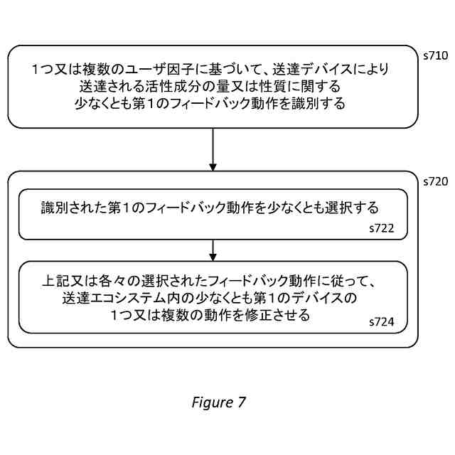 【解決手段】ユーザフィードバックシステムは、1つ又は複数のユーザ因子に基づいて少なくとも第1のフィードバック動作を識別するように構成された推定プロセッサであり、少なくとも第1のフィードバック動作が、送達デバイスにより送達される活性成分の量又は性質に関し、フィードバック動作が、1つ又は複数のユーザ因子によって少なくとも部分的に示されるように、ユーザの状態を変更するように期待される、推定プロセッサと、識別された第1のフィードバック動作を少なくとも選択するとともに、上記又は各々の選択されたフィードバック動作に従って、送達エコシステム内の少なくとも第1のデバイスの1つ又は複数の動作を修正させるように構成されたフィードバックプロセッサと、を備える。