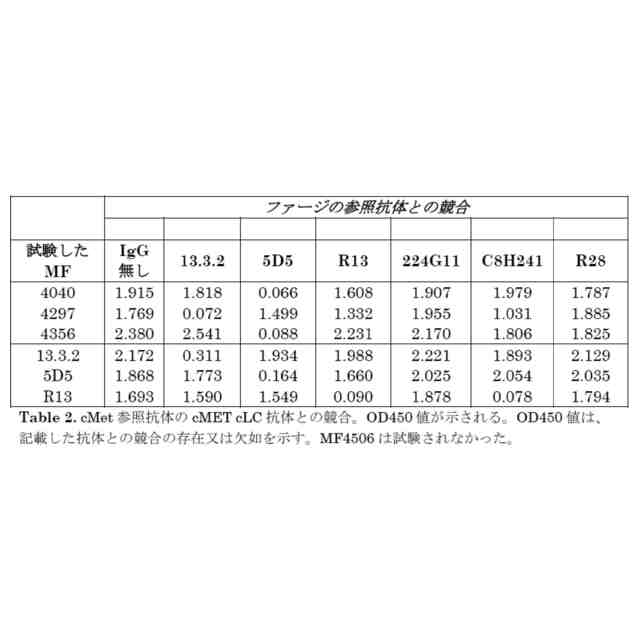 cMETのリガンド、肝細胞増殖因子(HGF;散乱係数としても公知)及びそのスプライシングアイソフォーム(NK1、NK2)は、cMET受容体の公知のリガンドである。HGFは、強力なマイトゲン/モルホゲンとして1991年に同定された。HGF/cMETシグナル伝達経路は、様々ながんの発生及び進行に重要な役割を果たす。ヒトがんにおけるHGF又はcMETの調節不全及び/又は過剰活性化は、予後不良と関連する。cMETは、過剰発現、増幅、又は変異によって活性化され得る。活性化は、がんの発生、進行、浸潤性増殖、及び転移を促進し得る。cMETは、HGF関連様式及びHGF非依存的様式で活性化され得る。HGF非依存的な活性化は、cMET過剰発現の場合に起こる。大量のcMETは、リガンドの不在下でも(ヘテロ)二量体化及び細胞内シグナル伝達を誘引し得る。さらなるリガンドは、そのようなcMET過剰発現細胞の機能に影響しないようである。cMET増幅はcMET過剰発現と関連し、腫瘍サブタイプのバイオマーカーとなっている。