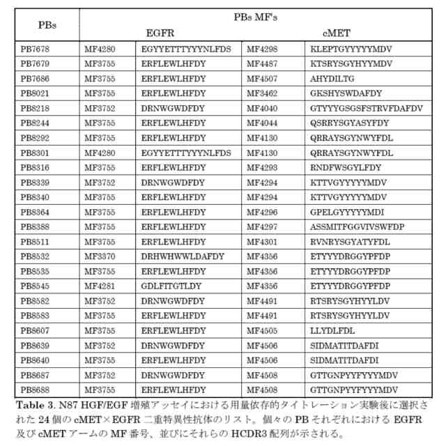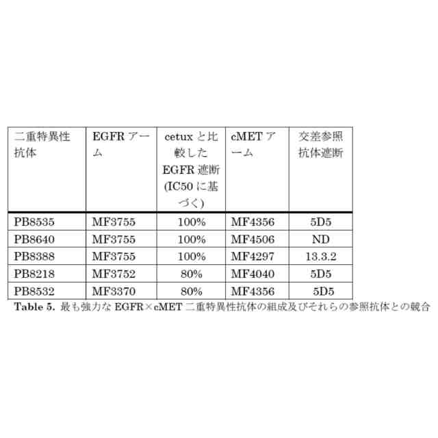 【課題】本明細書に開示されている本発明は、上皮成長因子受容体(EGFR)の細胞外部分に結合することができる第1の可変ドメイン及びMETがん原遺伝子、受容体チロシンキナーゼ(cMET)の細胞外部分に結合することができる第2の可変ドメインを含む二重特異性抗体に関する。