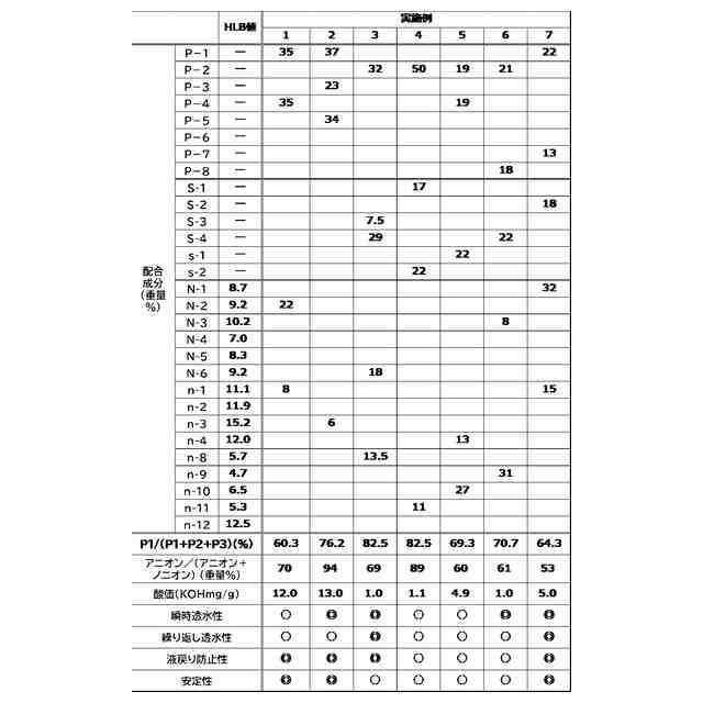 すなわち、本発明の透水性付与剤は、P元素を含むアニオン性界面活性剤(P)と、S元素を含むアニオン性界面活性剤(S)(前記界面活性剤(P)を除く)及びノニオン性界面活性剤(N)から選ばれる少なくとも1種と、を含む透水性付与剤であって、