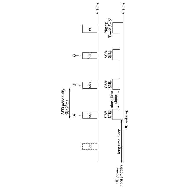しかし、例えばLTEにおけるCRS(Cell-specific Reference Signal)に比べると、SSBは比較的長い周期で送信されるため、端末はSSB受信処理のために、PO受信のタイミングに対してより早期にwake upしなければならない。そのため、長時間のスリープが確保できなくなり、端末消費電力の増大につながる。
