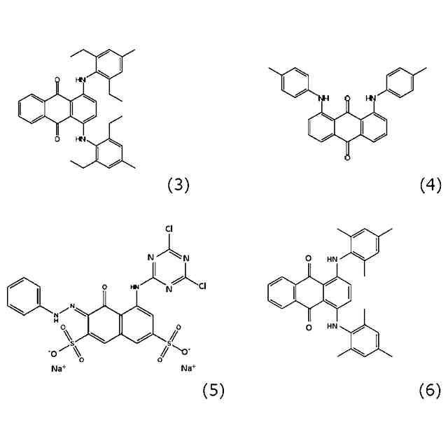 前記染料(B)が、下記式(3)~(6)で表される化合物からなる群より選択された2種以上の染料である、上記[1]に記載のポリエステル樹脂組成物。