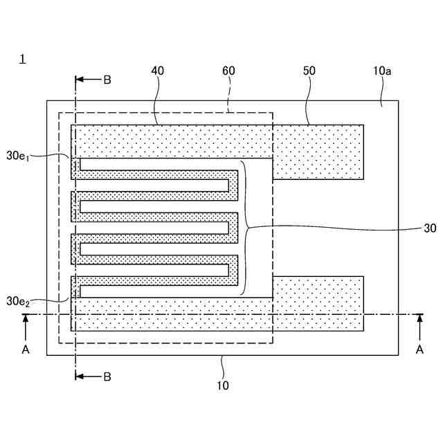 第1実施形態に係るひずみゲージを例示する平面図である。