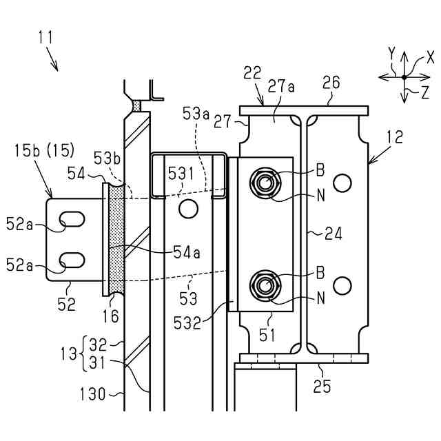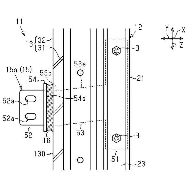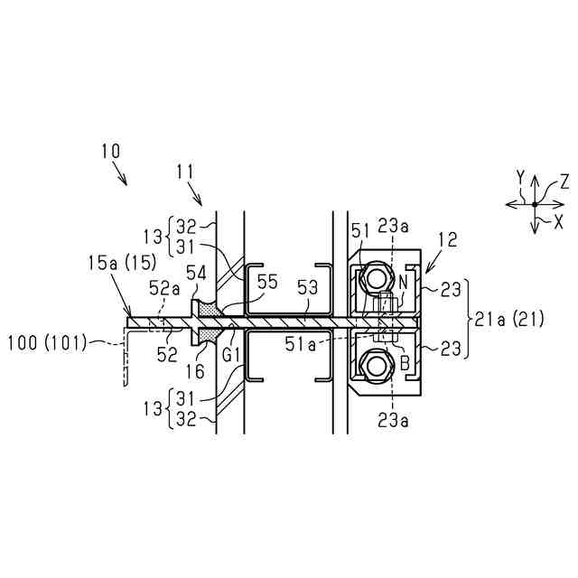 前記接続部は、前記縦目地に挿通される基部と、前記横架材が延びる方向において前記基部に対する前記固定部の位置がずれるように前記基部と前記固定部とを接続するシフト部とを有し、