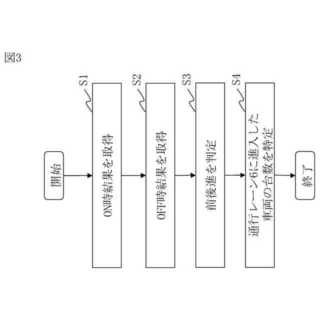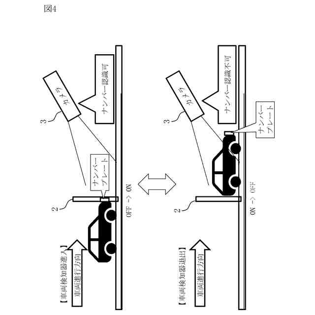 本開示では、ONタイミングにおいてナンバープレートが検知されたか否かと、OFFタイミングにおいてナンバープレートが検知されたか否かとの組合せから、車両が前進しているか後進しているかが判定される。これにより、車両検知器を1台にした場合にも、車両が前進しているか後進しているかを判定可能である。