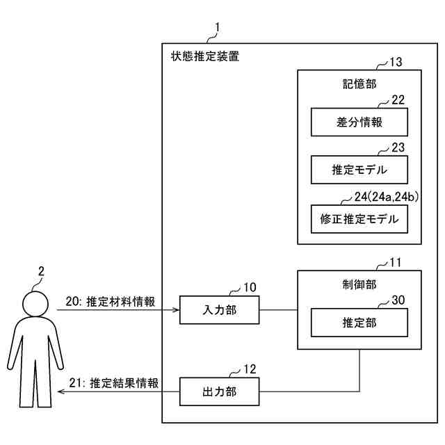 前記制御部は、前記被観察者の識別情報を受け付け、前記識別情報に対応する前記差分情報を取得する、請求項1に記載の状態推定装置。