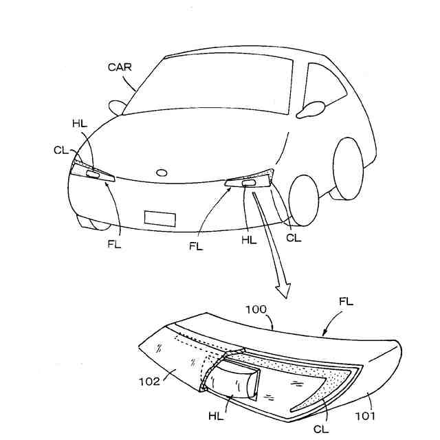 上側のランプユニットCLは、導光体を用いたクリアランスランプ、ターンシグナルランプ、DRL(Daytime Running Lamp:デイタイムランニングランプ)のいずれか、あるいはこれらを兼用したランプとして構成されている。下側のランプユニットHLは本発明が適用されたヘッドランプとして構成されている。なお、以降において前後方向はヘッドランプHLの前方から後方に沿った方向であり、左右方向はヘッドランプHLを正面から見て左右に沿った方向である。