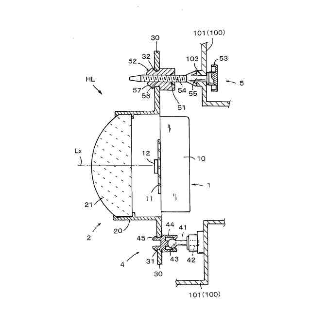 特許文献1の技術において、エイミングスクリューはランプハウジング内に配置されているが、ランプハウジング内での空気の移動等により微小な異物が雄ネジ部の表面に付着することがある。あるいは、エイミングスクリューを軸転したときに、螺合されているナットとの接触面において摩耗粉等の異物が発生することがある。そのため、エイミングスクリューを軸転するときに、異物によって雄ネジ部と雌ネジ部の接触面における円滑な動作が阻害されることがある。このような状況になると、エイミングスクリューを軸転操作する際の回転トルクが増大し、安定したエイミングスクリューの回転が損なわれ、エイミング装置の信頼性が低下されることがある。