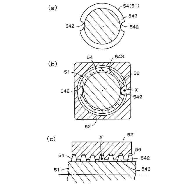 【解決手段】雄ネジ部54を備えるスクリュー51であり、スクリュー51の雄ネジ部54にナット52が螺合され、スクリュー51が軸転されたときにナット52がスクリュー51の軸方向に移動されるスクリューである。スクリュー51の雄ネジ部54には軸方向に延びる所要長さの凹溝542が形成される。凹溝542は、雄ネジ部54の軸方向に隣接するネジ谷を連通され、雄ネジ部54のネジ山の軸回り方向の一部を切除した構成とされ、少なくともナット52の軸方向の寸法よりも長く形成される。