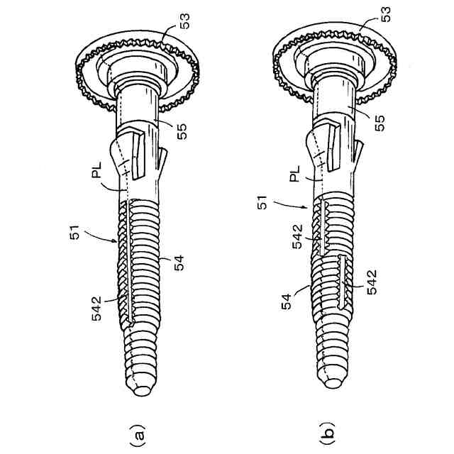 前記スクリューは基端部に操作部を備えており、この操作部において軸転操作される請求項1に記載のスクリュー。