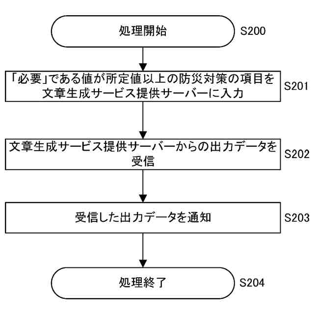 前記推論部で推論された推論結果に係るデータを、文章生成サービス提供サーバーに入力する入力部と、