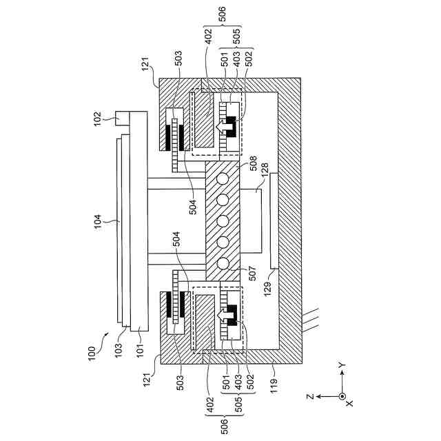 本開示の一実施形態に係るZモータを搭載した磁気浮上ステージのYZ平面での模式的な断面図である。