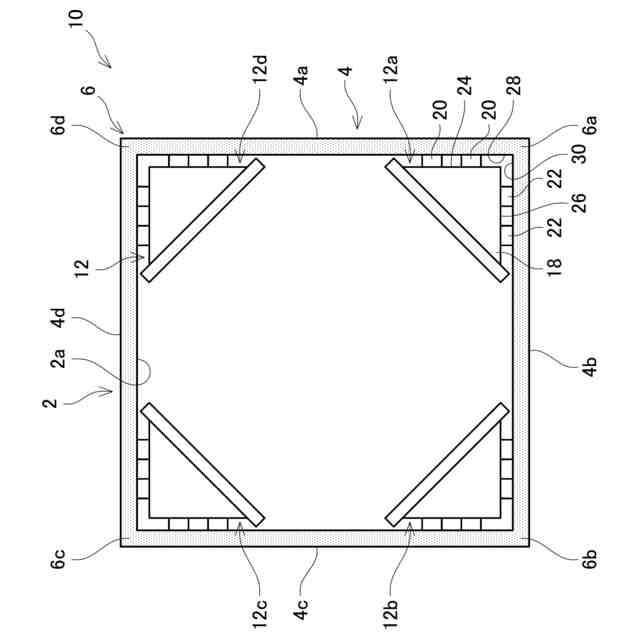 前記匣鉢は、上面視したときに、第1角部と、前記第1角部の対角に配置されている第2角部を備えており、