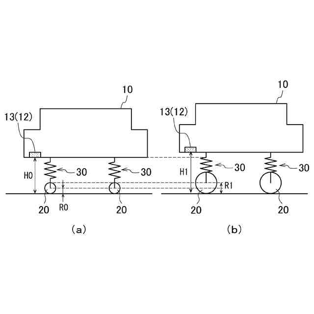 路面と車体との間の距離を電磁波の照射を用いて測定する距離センサと、