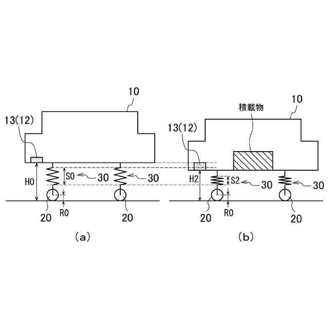 積載状況が変化した車両の状態を示す模式図である。