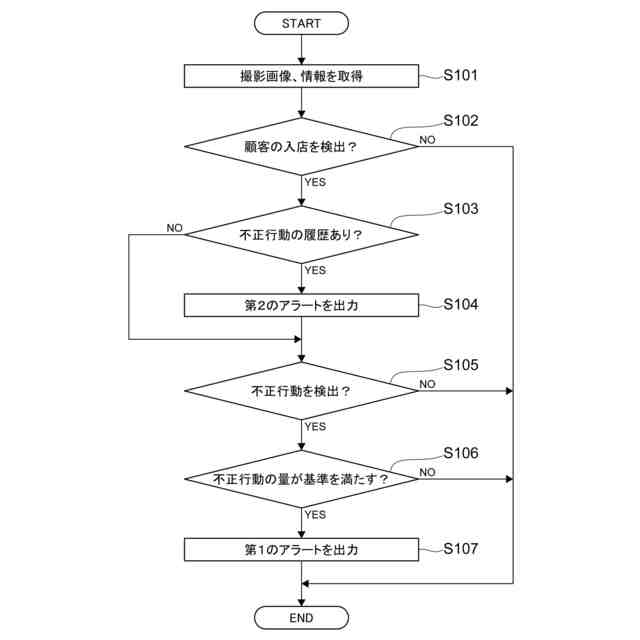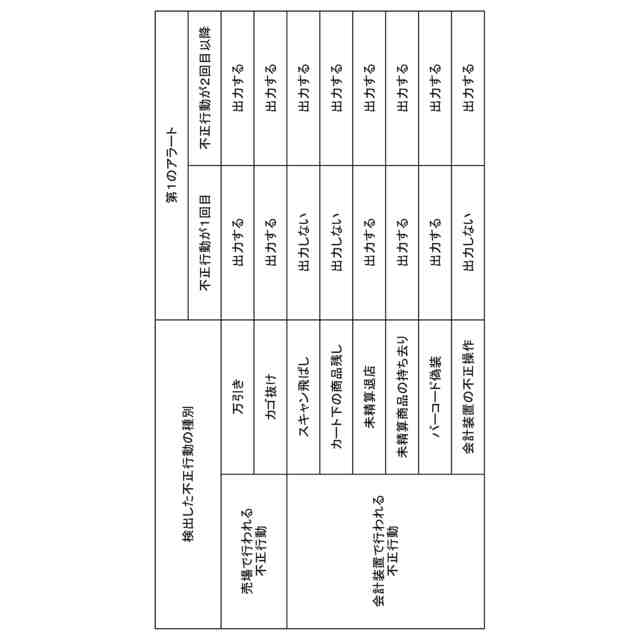 また、他の観点から捉えると、本発明は、コンピュータに対し、店舗での商品の購入に関する顧客の不正行動を検出する機能と、検出された顧客の不正行動の量が予め定められた基準を満たすかを判定する機能と、顧客の不正行動の量が前記基準を満たす場合に、店舗側端末に、不正行動が行われたことを示す第1のアラートを出力する機能とを実現させるプログラムである。