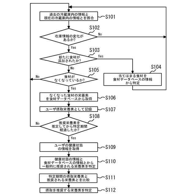冷蔵庫内の食材の在庫情報からユーザが摂取した栄養素の情報を取得する摂取情報取得手段と、