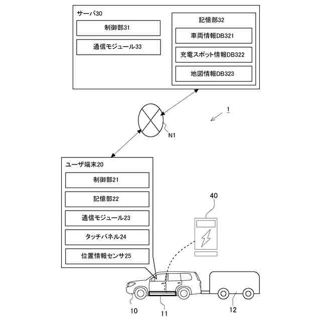 は、トレーラの有無、連結されるトレーラの種類等のトレーラの属性がその時々で変更され得る。連結されるトレーラの属性が変更されると、車両のバッテリの消費特性が変わり得る。従来では、このようなトレーラの属性の変更による影響が考慮されておらず、充電スポットを適切に提案することが困難である可能性がある。本開示は、係る問題を解決する。